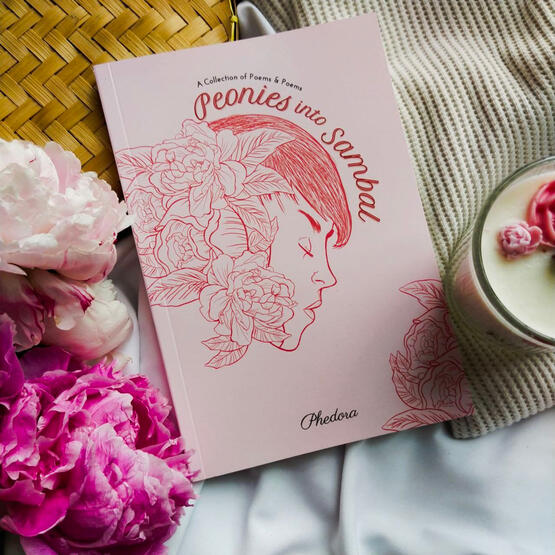 Peonies into Sambal is the second poetry collection by Phedora but the first to be debuted under her own name.Phedora penned her journey as a Malaysian of Kadazan and Chinese descent navigating adulthood.Her collection dives into the process of sambal-making by seeking to accept, process, and define the self through finding love, losing hearts, and self-exploration on what it means to find a home._"Peonies into Sambal represents the blooming questions of identity that constantly roams my mind.‘Peonies’ because a good friend of mine loves this flower. Peonies in the title to me represents time and elegance; patience and resilience. ‘Sambal’ because I love nasi lemak and how sambal is a necessity for every nasi lemak there is out there.Without sambal, there wouldn’t be any kick to the meal. Peonies into Sambal simply means time is needed for growth and acceptance."